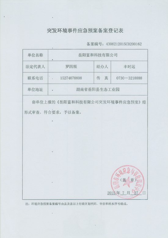 突發(fā)環(huán)境事件應(yīng)急預(yù)案備案登記表